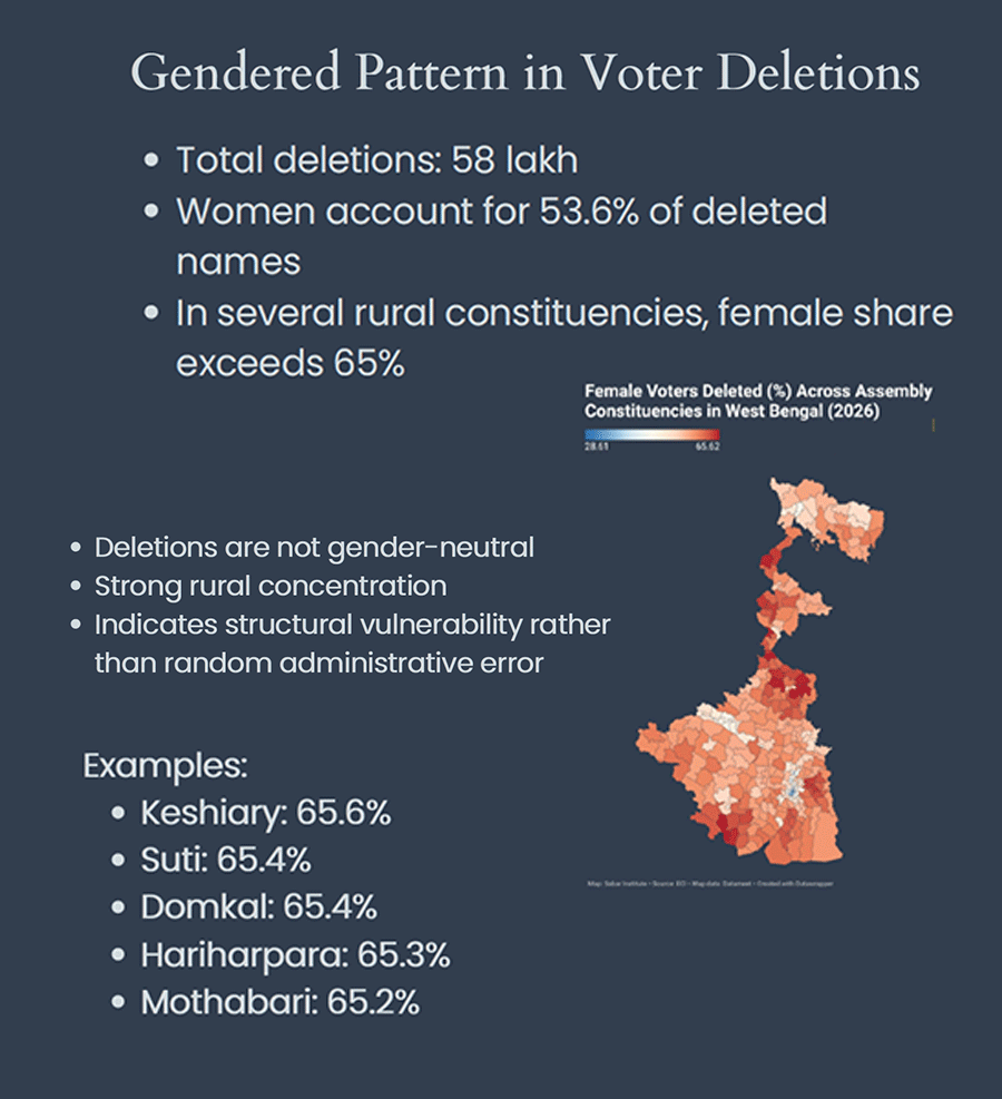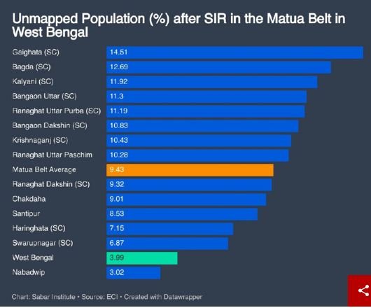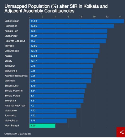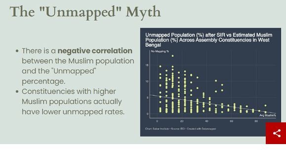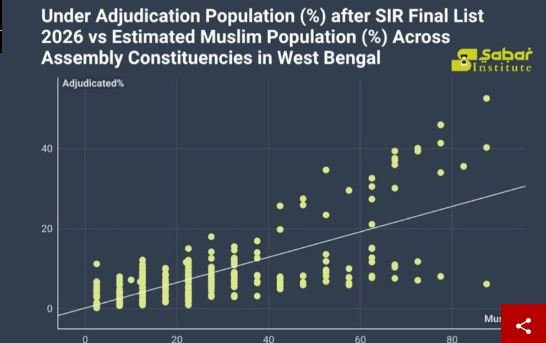 پیر کے روز نئی دہلی میں منعقدہ ایک تقریب میں پیش کردہ اعداد و شمار کے مطابق، مغربی بنگال میں جاری انتخابی فہرستوں کی ‘خصوصی گہری نظرثانی’ (SIR) کے دوران مسلم ووٹرز کی ایک بڑی تعداد کو “منطقی تضادات” (logical discrepancies) کے نام پر نشانہ بنایا گیا ہے۔ اس کے علاوہ، کئی مقامات پر نکالے گئے ناموں میں سے نصف سے زائد تعداد خواتین کی ہے۔