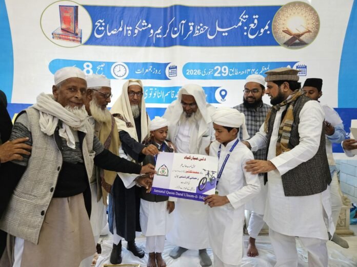 جامعۃ القاسم دارالعلوم الاسلامیہ، مدھوبنی (سپول) کے تین کم سن طلبا نے محض ڈیڑھ برس کے قلیل عرصے میں حفظِ قرآنِ کریم مکمل کرکے ایک نئی مثال قائم کی ہے۔ قابلِ ذکر بات یہ ہے کہ ان تینوں طلبا کی عمر 11 برس سے بھی کم ہے۔ اس شاندار کامیابی پر جامعۃ القاسم میں ایک پُروقار انعامی تقریب منعقد ہوئی، جس میں شریک علمائے کرام نے طلبا کو مبارک باد پیش کی اور ادارے کے تعلیمی نظام کو سراہا۔