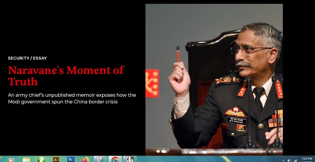 واضح رہے کہ جنوری 2024 میں یہ رپورٹ سامنے آئی تھی کہ جنرل نراوَنے کی یادداشت ’’فور اسٹارز آف ڈیسٹنی‘‘ وزارتِ دفاع اور وزارتِ خارجہ سے منظوری کی منتظر ہے، اس کی وجہ سے اس کی اشاعت رکی ہوئی ہے۔ اتوار (1 فروری) کو ’’دی کارروان ‘‘نے اس کتاب کے کچھ حصے شائع کیے تھے، جن میں 2020 کے پاک چین سرحدی تنازع کو سنبھالنے کے حکومتی طریقے پر سوالات اٹھائے گئے ہیں۔
